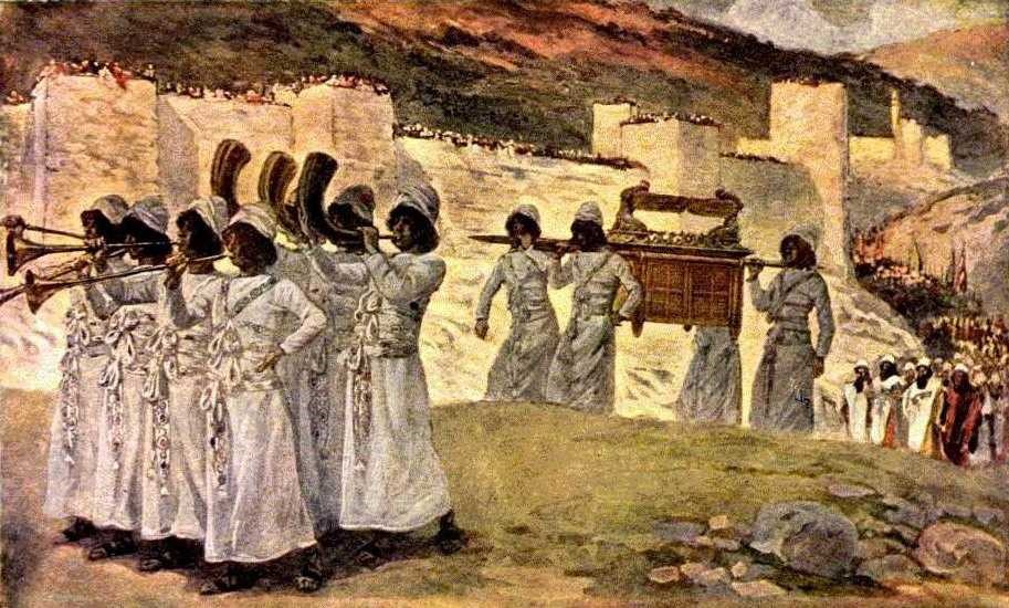 이에 백성은 외치고 제사장들은 나팔을 불매 백성이 나팔 소리를 들을 때에 크게 소리 질러 외치니 성벽이 무너져 내린지라. 백성이 각기 앞으로 나아가 그 성에 들어가서 그 성을 점령하고 그 성 안에 있는 모든 것을 온전히 바치되 남녀 노소와 소와 양과 나귀를 칼날로 멸하니라.