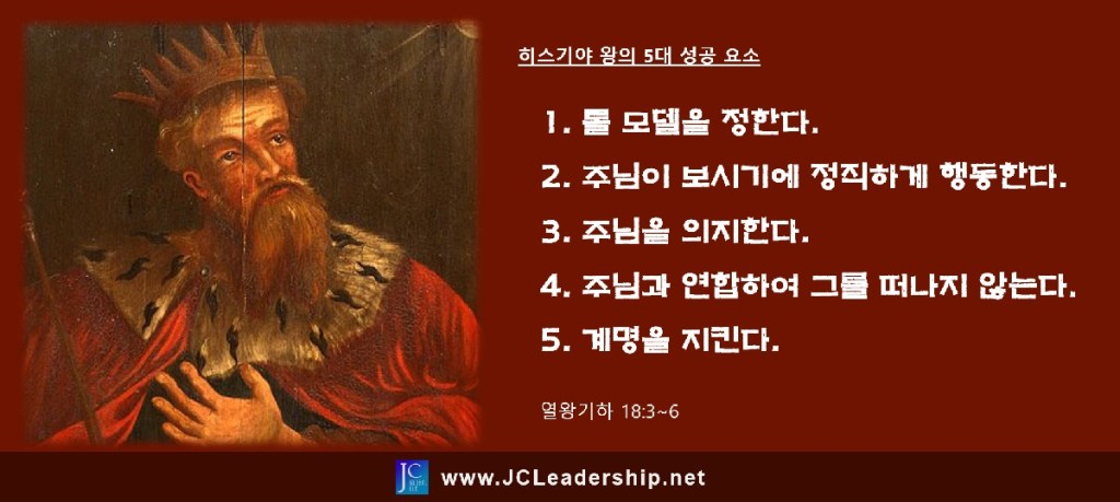 하나님을 정말로 안다면, 하나님을 정말로 믿는다면, 주님의 살아 계심과 역사하심을 정말로 믿는 크리스천 리더라면 히스기야의 다섯가지 요소가 그의 삶속에서도 발견되어져야 할 것입니다. 그것이 하나님이 주시는 축복을 누리는 가장 기초적인 크리스천 리더의 삶의 모습일 것입니다.