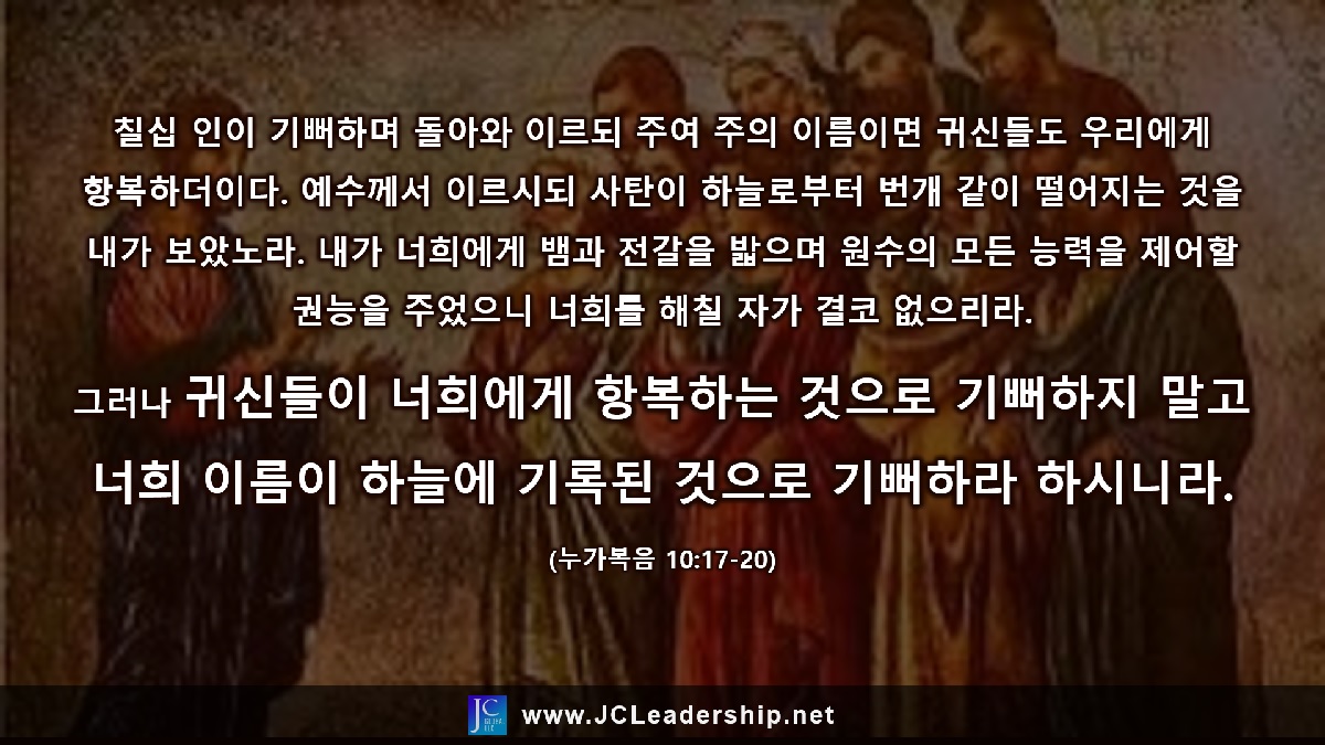 현상을 보고 본질을 못 보는 경우를 생각해 보게 하는 말씀입니다. 보냄을 받은 70인이 돌아와 자신들에게 귀신들이 항복하였다며 주님께 신나게 보고를 합니다. 그런 제자들에게 주님은 귀신들이 항복하는 현상보다 하늘에 이름이 기록되는 것을 기뻐하라고 말씀하시는 것입니다.