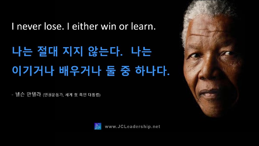 인권 운동가이며 세계 첫 흑인 대통령이었던 넬슨 만델라는 “나는 절대 지지 않는다. 나는 이기거나 배우거나 둘 중 하나다.”라는 말로서 성공 습관의 정의를 내려 주었습니다. 그렇게 그는 이기던 배우던 둘 중 하나를 성취하는 성공 습관을 가졌던 것입니다. 그런 성공 습관이 모여 우리가 아는 역사에 길이 남은 위대한 리더 “넬슨 만델라”를 만들었습니다.