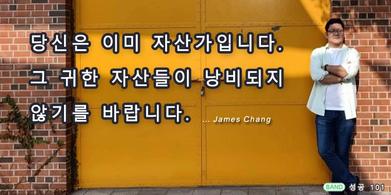 단순한 자산 하나라도 그 가진 자산을 투자하고 있다면 역량은 향상될 것이고, 주변에는 좋은 사람들이 모이게 될 것입니다. 그러한 과정속에서 당신은 새로운 자산을 만들어지는 것을 체험하게 될 것입니다. 그리고 그 자산들이 다시 투자되어 또다시 새로운 자산이 변화하고 창조되는 과정의 반복을 통해 당신은 당신이 원하는 꿈에 다가가게 될 것입니다.
