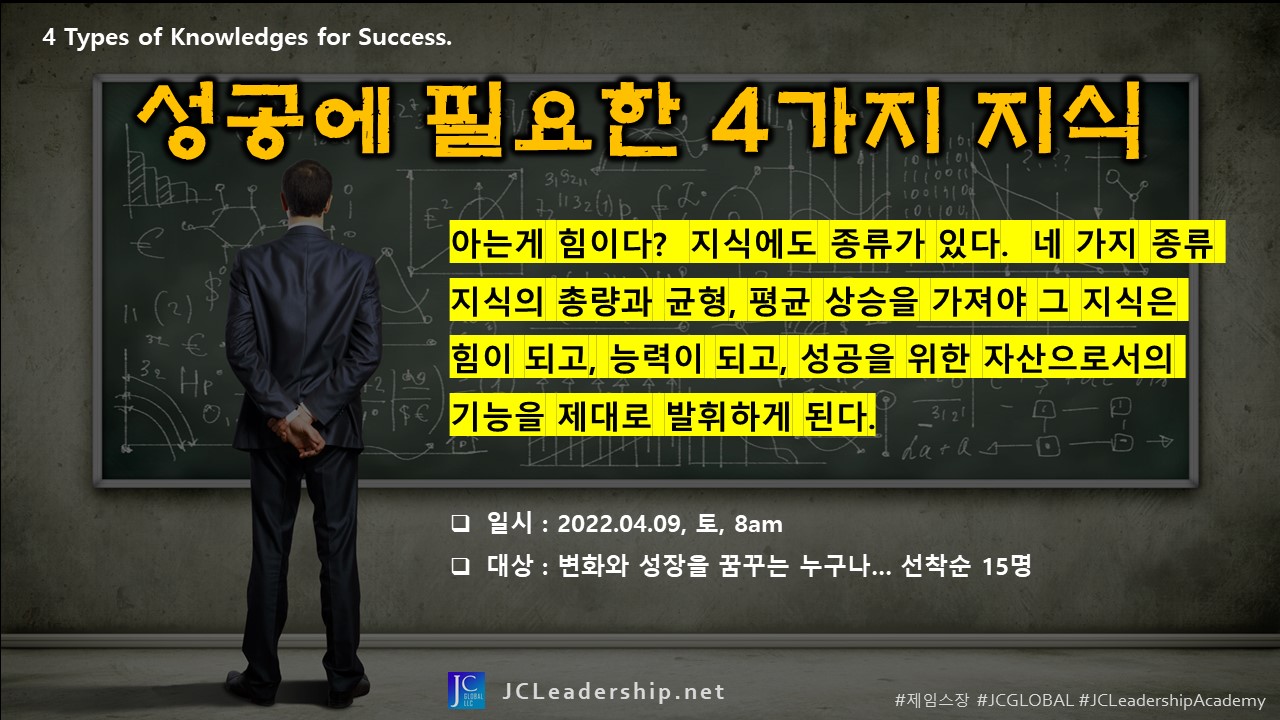 지식에도 종류가 있다. 성공에 필요한 4가지 지식의 총량과 균형, 평균 상승이 있어야 그 지식은 힘이 되고, 역량이 되고, 성공을 위한 자산으로서의 가치를 발휘하게 된다.