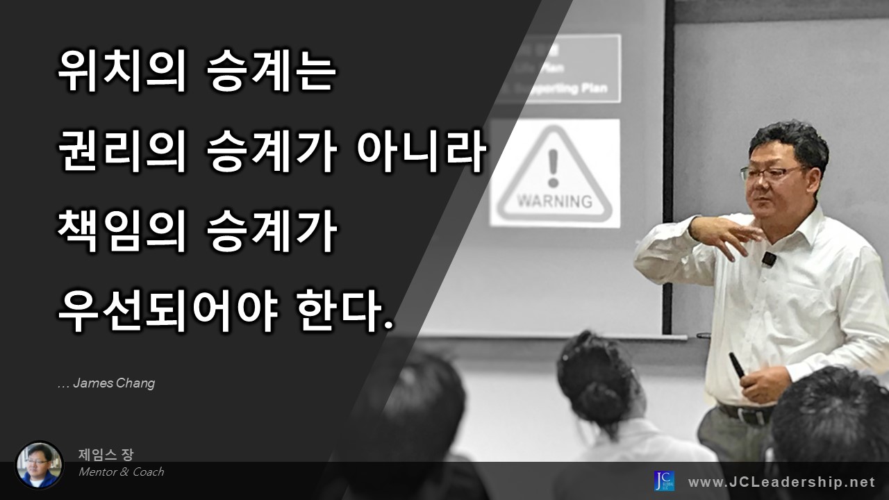 위치의 승계는 책임의 승계가 우선되어져야 한다. 어떤 위치이던 그 정해진 위치에는 감당해야 하는 책임이 존재한다. 그리고 그 책임을 감당할 수 있는 리더가 그 위치에 있을 때 조직의 구성원은 행복할 수 있으며 조직의 미래는 밝다고 말할 수 있다. 그렇기에 위치의 승계에서 책임의 승계가 우선되어져야 한다는 것은 구성원의 미래는 물론이요 조직의 미래에 너무도 중요한 요소가 된다.