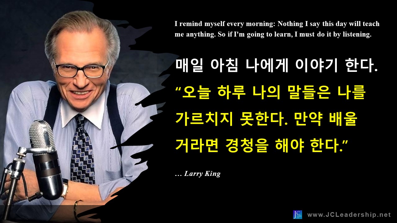 미국의 유명한 톡쇼 호스트인 래리킹의 명언이다. 어차피 내가 하는 말은 이미 다 내가 아는 것들이니 나의 말에서 내가 배울 것은 없다는 것이다. 너무도 단순한 진실임에는 분명하다.