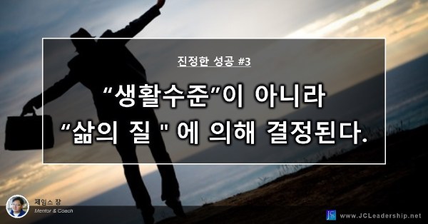 성공에 대해 이야기를 하다 보면 수많은 사람들이 얼마나 가졌는가를 기준으로 성공을 가늠하고 있음을 발견하게 됩니다. 돈, 부동산, 명예, 직위, 학벌 등등의 것들을 기준으로 성공을 측정하는 것입니다. 하지만 저는 앞 글을 통해서 그러한 것들은 성공이 아니라 성취의 영역이라 정의합니다. 그리고 저는 성공의 첫째 기준은 마음의 평화이고 마음의 평화는 건강, 관계, 감성, 경제 등의 것들이 균형 잡힘으로... Continue Reading →