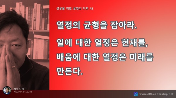 성공이 요구하는 균형 – 2. 열정. 열정에도 균형이 필요합니다. 성공에 있어서 열정은 참으로 중요한 것임에는 분명 하지만 저는 그 열정 때문에 망하는 분도 많이 보았습니다. 물론 무분별의 문제점도 있겠지만 오늘은 균형이라는 각도에서 이야기 하고자 합니다.