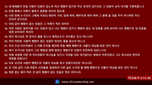 세상은 중심을 보는 능력이 없기에 나의 외면만을 보는 것이다. 그렇다면 나는 나의 행위를 통해 내 믿음을 그 세상에 검증해 보여야 한다. 그래야 세상에게 하나님을 발견할 수 있는 기회가 주어지기 때문이다. 만약 그렇지 못하다면 나는 오히려 하나님의 구원 역사에 전혀 도움이 되지 않고 있거나 또는 오히려 방해가 되는 존재가 될 수도 있다.