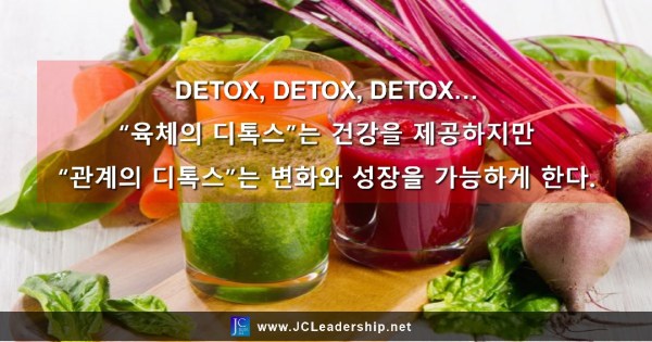 주변에 보면 디톡스에 관심있는 분들이 많습니다. 독소 배출이라는 개념에서 건강을 위함도 있겠지만 다이어트 등의 미용의 이유로 디톡스에 관심을 가지는 분들도 점점 많아지는 것 같습니다. 하지만 디톡스를 해야 할 영역이 또 하나가 있습니다. 바로 “관계의 디톡스” 입니다. 우리들의 주변에는 디톡스의 대상이 되는 사람들이 분명 존재합니다. 바로 나의 시간, 에너지, 열정 등의 성공에 절대적으로 필요한 자산과... Continue Reading →