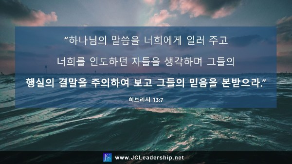 성경속의 리더십 (5) 보여줌의 리더십 (솔선수범) 하나님의 말씀을 너희에게 일러 주고 너희를 인도하던 자들을 생각하며 그들의 행실의 결말을 주의하여 보고 그들의 믿음을 본받으라.히브리서 13:7 리더십을 이야기하다 보면 솔선수범에 관한 이야기는 반드시 나오는 내용입니다. 그리고 솔선수범은 리더의 보여지는 행동을 구성원들이 보고 배우는 것을 이야기합니다. 말씀을 보면 구성원이 리더의 무엇을 주의하여 보아야 하는지를 가르치고 있는 것을 볼... Continue Reading →